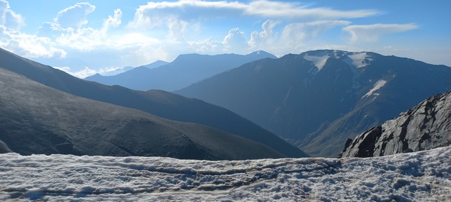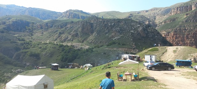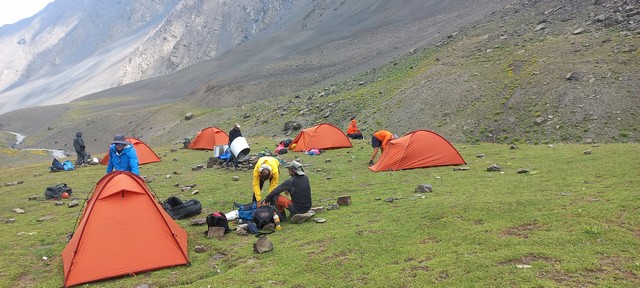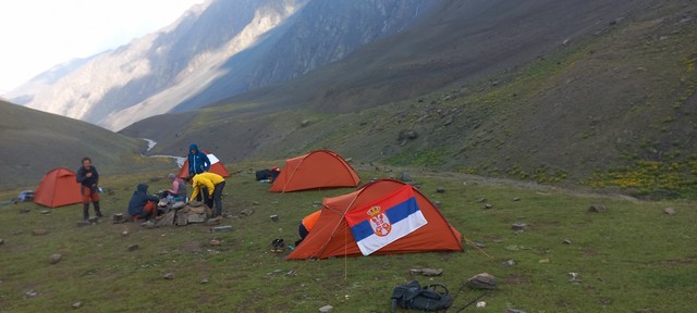 Dan 3. Prevoz teretnim vozilom do polazne tačke za uspon na 2700mnv. Oko 1km iza sela se nalazi granični prelaz na kome treba pokazati pasoše i dobiti dozvolu (obezbeđuje lokalna planinarska agencija). Put kojim se ide je improvizovan većim delom, prelazi se korito reke par puta...Put vodi kroz nacionalni park Šahdag. Na jednom platou se pravi pauza jer se sa tog mesta pruža pogled na nekoliko vrhova preko 4000m, ukljičujuči Šahdag, Zafar i Bazarduzu. Sa visine od 2700mnv se kreće na uspon do mesta za postavljanje šatora na 3250m. Dužina staze oko 4km, visinska razlika 550m, potrebno vreme nešto manje od 2 sata. Može se dogovoriti uz nadoknadu da teže stvari do kampa prebace konji. Po dolaski postavljanje šatora i kraći aklimatiyacioni uspon do 3500mnv.